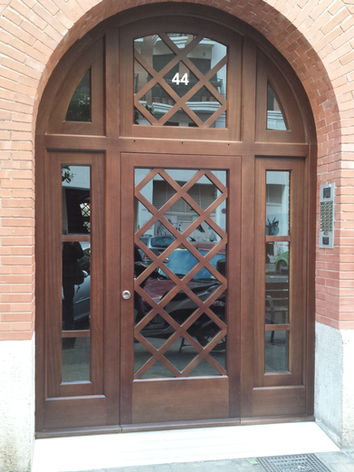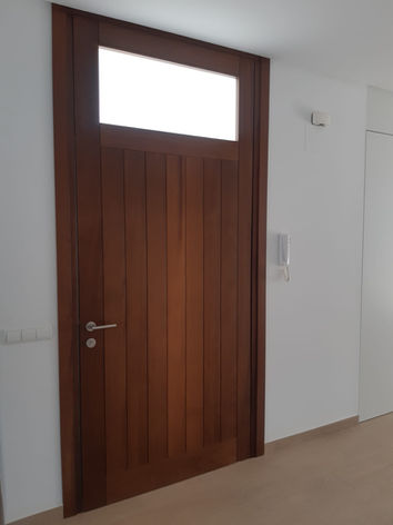 Portes d´entrada en fusta massissa, treballades amb la dedicació que només ofereix la veritable fusteria d´ofici.